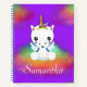 An adorable unicorn design featuring a baby, winged unicorn (or baby Pegasus) perched on a rainbow-coloured, fluffy cloud. In the background is a colourful, vivid purple sky and more rainbow clouds.