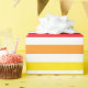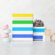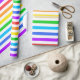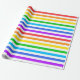 A wrapping paper designed with a striped pattern with bright rainbow colors and white.