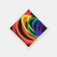 Here is a set of gorgeous paper napkins featuring an abstract three dimensional pattern of rainbow crescent moons in colours of red, orange, yellow, green, blue and purple on a black background.