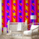Rainbow Colour Neon Stripe and Circle Pattern Art Wallpaper