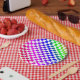 image of rainbow coloured chequered pattern. colours range from red, orange, pink, purple, blue and green.