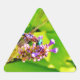 Rainbow coloured Dragonfly on a purple pink flowe Triangle Sticker