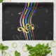 Rainbow coloured musical notes floating on rainbow coloured musical lines on black and grey musical note background . Any name can be added by clicking on the customise button. Perfect for the music lover. sgb01