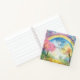Beautiful colourful notebook to write down and keep a note of your happy thoughts. Image is a rainbow and blue sky with clouds over rolling countryside with trees and pretty pink and yellow flowers. Write down your happy thoughts to help your mental health stay positive and give yourself motivation. Great book for kids, young adults or older adults. You can change the quote (the sun always shines after the storm) and add a name by clicking on the personalise button. Change 'inside paper design' on the right of the image, choose from lined paper, bullet, sketch, graph, recipe, checklist and more.