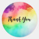 Thank you stickers, with a watercolor background featuring colours of the rainbow.