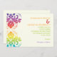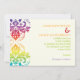 Rainbow colours damask wedding invitation that features a damask motif in rainbow colours on ivory background. This modern yet classic design is a template and is part of a wedding set suitable for a spring, summer of fall wedding with a rainbow theme. It is customisable and can be personalised. Colours: Red, orange, yellow, green, blue, violet purple, ivory.
