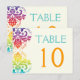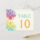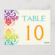 Rainbow colours damask wedding table number postcard that features a damask motif in rainbow colours on ivory background. This modern yet classic design is a template and is part of a wedding set suitable for a spring, summer of fall wedding with a rainbow theme. It is customisable and can be personalised. Colours: Red, orange, yellow, green, blue, violet purple, ivory.