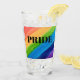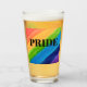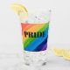 This glass cup is decorated with watercolor stripes in rainbow colours and the word Pride in black typography.