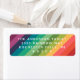 Modern and colourful return address labels feature white sans serif return address text against a bold background pattern of diagonal rainbow stripes. Personalise with your custom family address wording.