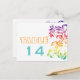 Rainbow colours colourful scroll leaf wedding table number postcard, featuring a colourful scroll leaf in rainbow colours on white background. This cheerful floral design is part of a wedding set and is a fully customisable template. Personalise it or click on “Customise it” to change font and text colour.
