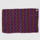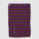 Colourful golf towel has rainbow ombre concho diamond style flower pattern on black background.