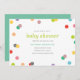 This white baby shower invitation features playful polka dot confetti in a variety of colours, surrounding elegant classic typography. The design is perfect for a fun and joyful celebration of the upcoming arrival of a new baby. The invitation is also available in a budget-friendly digital format, allowing for easy downloading, printing at home, or electronic sending.