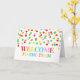 Welcome to the team card for new employees in rainbow confetti pattern.