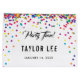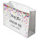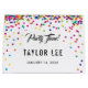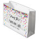 Rainbow confetti sprinkles birthday party gift bag! Featuring fun rainbow coloured confetti circles sprinkles all around with your birthday boy or girl's info in the centre. "Party Time" in fun script font with your child's information below. Great gift bag for the rainbow birthday!