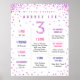 Celebrate the milestone's with your daughter's third birthday with this colorful rainbow confetti poster with pink and purple, lilac and lavender, Featuring your child's favorite books, foods, toys, height, weight, loves and more, you're sure to cherish this poster for years to come. Easy to edit and would look amazing framed for your party!