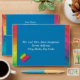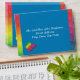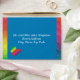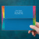 A simple yet elegant design that puts the important information front and centre in an easy-to-read fashion. The solid background bordered by a splash of rainbow colour makes this envelope hard to overlook in the mailbox! Chose any colour you like for the background (shown here in a dusky blue). You may choose from the provided heart or butterfly as your accent, or upload an image of your own choosing. Use the provided template fields to quickly personalise with your information. (If you prefer to hand-address the envelope, leave the text filed blank.) Click "customise further" to change font, size, colours, and positions.