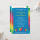 A simple yet elegant design that puts the important information front and centre in an easy-to-read fashion. The solid background bordered by a splash of rainbow colour makes this invitation stand out! Choose any colour you like for the backgrounds (shown here with a dusky blue on the front and white on the back) and chose your own photo to make it truly unique. Use the provided template fields to quickly personalise with your information. Click "customise further" to change font, size, & colours and to reposition or delete items.