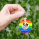 This bright rainbow anniversary gift features a custom LGBTQ engagement photo for a gay or lesbian couple who loves bold, colourful keychain. Personalise this cheery LGBT design with your romantic photograph, names, and occasion date.