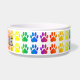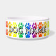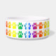 Dog pawprints in the colours of the rainbow. Custom dog name bowls. Edit name to customise. Gift idea.