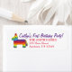 Labels feature an original marker illustration of a rainbow donkey piñata. Great for a birthday party, Cinco de Mayo, pride, or any fiesta-themed celebration! Coordinating party designs available. Simply personalise with your information.
