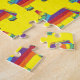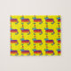 Puzzle features an original marker illustration of a colourful rainbow donkey pinata on a yellow background. Great for a birthday party, pride, Cinco de Mayo, or any fiesta-themed event!