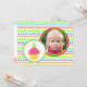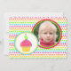 A colourful way to celebrate a second birthday! 2nd birthday party invitation features rows of polka dots in neon rainbow colours of pink, orange, yellow, green and blue! On the front the invitation is two circles trimmed in coordinating colours. Inside one circle is a pretty little cupcake with a yellow cupcake paper and pretty pink icing with neon rainbow sprinkles. There is a number two candle lit on top of the cupcake. Inside the other circle is a place to add a photo of the birthday child. The reverse side of the invitation has one row of each colour, two at the top and two at the bottom. In between the rows of polka dots is a place to custom with your own text in font of coordinating neon rainbow colours. The perfect invitation for the rainbow themed or cupcake themed party!!