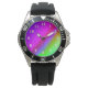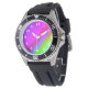 Has heft and feel of expensive stainless steel quartz wrist watches. Solid construction and good looks. Although it had a really top quality rubber strap, I substituted a stainless steel "Shark" style mesh strap, which I think is the most comfortable strap available. Perfect. True colors of original image. Clear, crisp image precisely aligned and spaced.