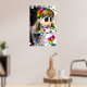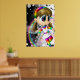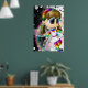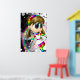A print of a cute rainbow fairy on a black and white spotted background.