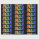 This vibrant, exciting, multicolored wrapping paper design features the common first name "BELLA" having a colourful rainbow spectrum gradient inspired colouring pattern. The background is coloured black. Vibrant wrapping paper like this might be a fun way to wrap a present or gift being given to somebody named Bella. [~Z0000354]