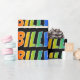 This fun, vibrant, exciting wrapping paper design features the common first name "BILLY" having a colourful rainbow spectrum gradient inspired colouring pattern. It also features a black coloured background. Exciting wrapping paper like this might be fun to use when giving a present to somebody named Billy. [~Z0000354]
