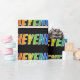 This exciting, multicolored, vibrant wrapping paper design features the common first name "CHEYENNE" having a colourful rainbow spectrum like colouring pattern. It also features a black coloured background. Vibrant wrapping paper like this might be a fun way to wrap a present or gift being given to somebody named Cheyenne. [~Z0000354]