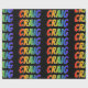 This exciting, vibrant, multicolored wrapping paper design features the common first name "CRAIG" having a colourful rainbow spectrum inspired colouring pattern. The background is coloured black. Colourful wrapping paper like this might be a fun way to wrap a present or gift being given to somebody named Craig. [~Z0000354]