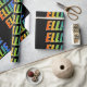 This vibrant, multicolored, exciting wrapping paper design features the common first name "ELLIE" having a colourful rainbow spectrum gradient like colouring pattern. The background is coloured black. Exciting wrapping paper like this might be a fun way to wrap a present being given to somebody named Ellie. [~Z0000354]