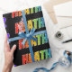 This multicolored, fun, vibrant wrapping paper design features the common first name "HEATHER" having a colourful rainbow spectrum inspired colouring pattern. The background is coloured black. Colourful wrapping paper like this might be fun to use when giving a gift to somebody named Heather. [~Z0000354]