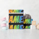 This multicolored, exciting, fun wrapping paper design features the common first name "JAMES" having a colourful rainbow spectrum like colouring pattern. The background is coloured black. Colourful wrapping paper like this might be fun to use when giving a present or gift to somebody named James. [~Z0000354]