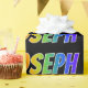 This fun, exciting, multicolored wrapping paper design features the common first name "JOSEPH" having a colourful rainbow spectrum inspired colouring pattern. The background is coloured black. Colourful wrapping paper like this might be fun to use when giving a present or gift to somebody named Joseph. [~Z0000354]