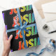 This exciting, fun, multicolored wrapping paper design features the common first name "JOSIAH" having a colourful rainbow spectrum like colouring pattern. It also features a black coloured background. Vibrant wrapping paper like this might be fun to use when giving a gift to somebody named Josiah. [~Z0000354]