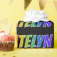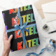 This multicolored, vibrant, fun wrapping paper design features the common first name "KATELYN" having a colourful rainbow spectrum gradient inspired colouring pattern. It also features a black coloured background. Exciting wrapping paper like this might be a fun way to wrap a present or gift being given to somebody named Katelyn. [~Z0000354]