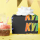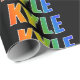 This vibrant, exciting, fun wrapping paper design features the common first name "KYLE" having a colourful rainbow spectrum like colouring pattern. The background is coloured black. Vibrant wrapping paper like this might be a fun way to wrap a present or gift being given to somebody named Kyle. [~Z0000354]