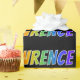 This exciting, fun, vibrant wrapping paper design features the common first name "LAWRENCE" having a colourful rainbow spectrum gradient inspired colouring pattern. It also features a black coloured background. Colourful wrapping paper like this might be a fun way to wrap a present being given to somebody named Lawrence. [~Z0000354]