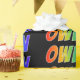 This vibrant, exciting, fun wrapping paper design features the common first name "OWEN" having a colourful rainbow spectrum like colouring pattern. It also features a black coloured background. Colourful wrapping paper like this might be a fun way to wrap a present being given to somebody named Owen. [~Z0000354]