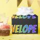This fun, vibrant, multicolored wrapping paper design features the common first name "PENELOPE" having a colourful rainbow spectrum gradient inspired colouring pattern. It also features a black coloured background. Vibrant wrapping paper like this might be fun to use when giving a gift to somebody named Penelope. [~Z0000354]