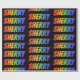 This multicolored, vibrant, exciting wrapping paper design features the common first name "SHERRY" having a colourful rainbow spectrum gradient inspired colouring pattern. The background is coloured black. Exciting wrapping paper like this might be a fun way to wrap a present being given to somebody named Sherry. [~Z0000354]