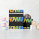 This fun, exciting, multicolored wrapping paper design features the common first name "STEPHANIE" having a colourful rainbow spectrum like colouring pattern. It also features a black coloured background. Exciting wrapping paper like this might be a fun way to wrap a present or gift being given to somebody named Stephanie. [~Z0000354]