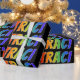 This fun, exciting, multicolored wrapping paper design features the common first name "TRACI" having a colourful rainbow spectrum gradient like colouring pattern. The background is coloured black. Colourful wrapping paper like this might be fun to use when giving a present or gift to somebody named Traci. [~Z0000354]
