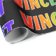 This fun, exciting, vibrant wrapping paper design features the common first name "VINCENT" having a colourful rainbow spectrum like colouring pattern. The background is coloured black. Colourful wrapping paper like this might be a fun way to wrap a present being given to somebody named Vincent. [~Z0000354]