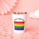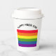 Celebrate! Simple yet colourful paper cup with the rainbow flag and custom text "HAPPY PRIDE 20xx". The white background can be replaced with any colour of your taste.
