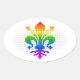 A rainbow fleur-de-lis with a fleur-de-lis background pattern.