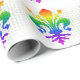 A rainbow fleur-de-lis with a fleur-de-lis background pattern.