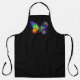 Rainbow, luminous, artistically painted monarch butterfly with bouquet of iridescent, bright, luminescent roses on black background. Rainbow butterfly.